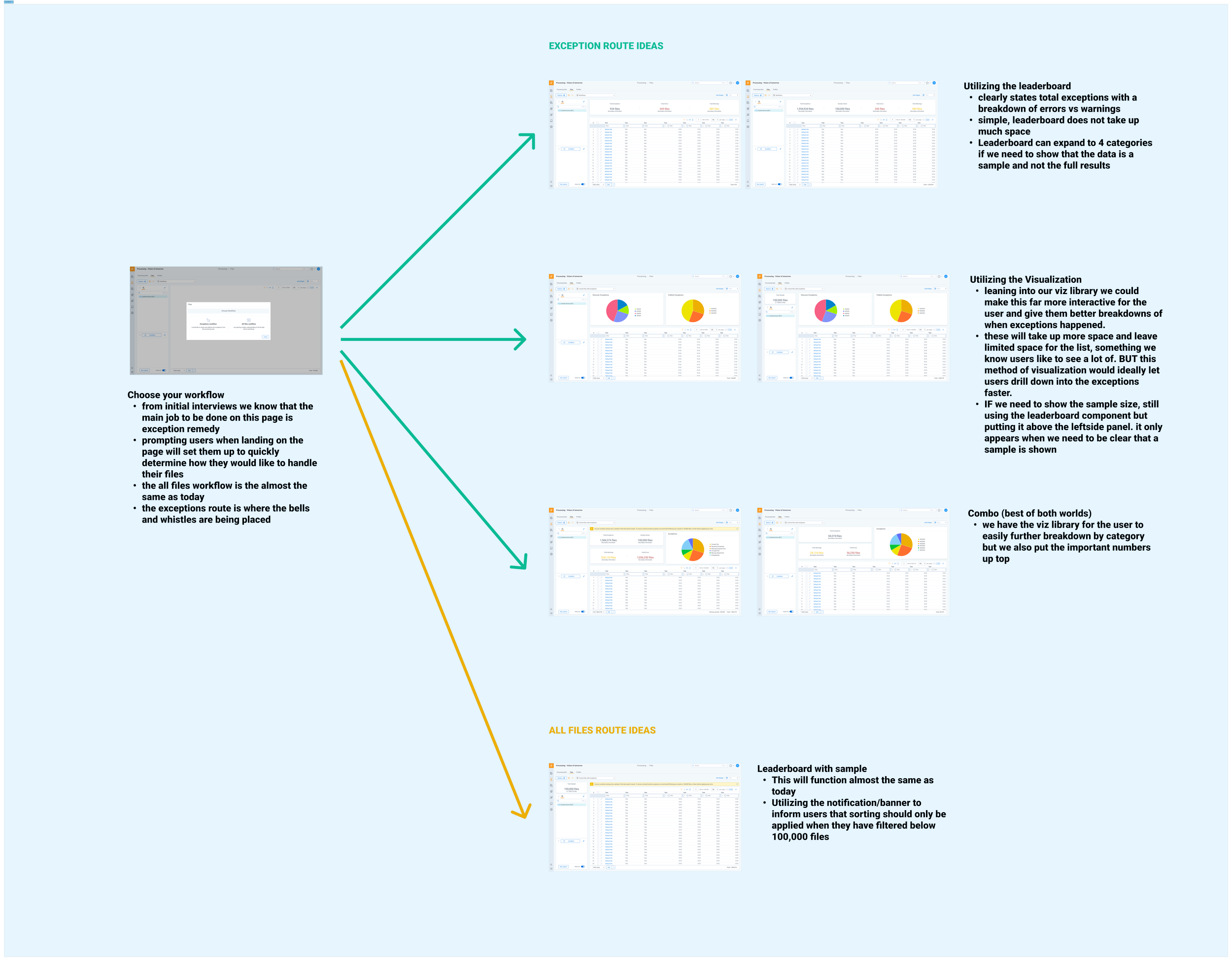 After review with PM and engineering, I narrowed to the exceptions route, where most traffic lands. Instead of reimagining the entire interface, we focused on the moment users notice something wrong and need to act. This let us preserve familiar patterns while introducing sampling and trust signals where they'd have the most impact.