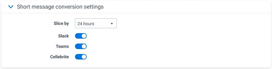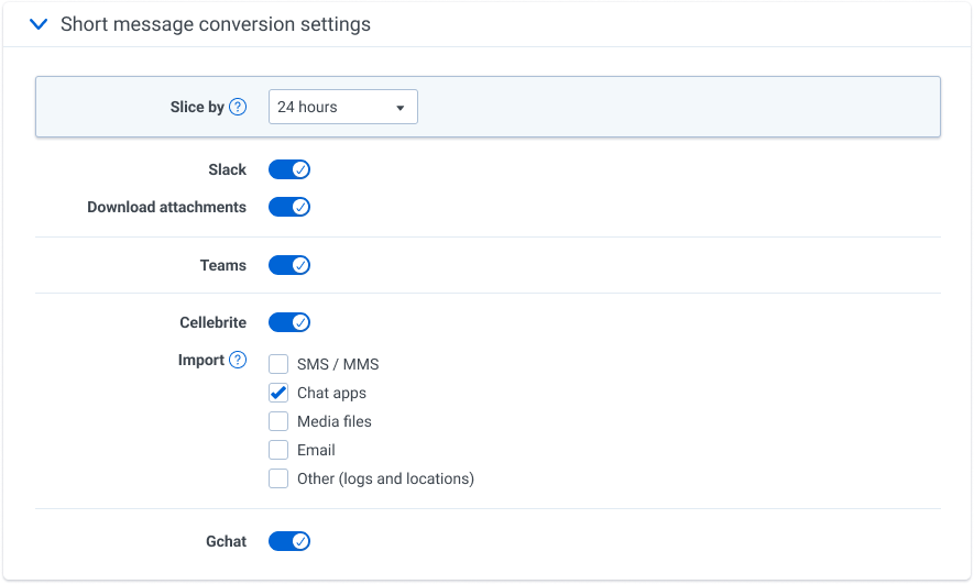 When it was just Slack, the settings were simple enough. Adding Teams didn't change much. But once Cellebrite introduced a third platform with its own filtering options, users started telling us they couldn't tell which settings applied globally and which were platform-specific. "Slice by" controlled everything, but nothing in the UI made that clear. We used the Google Chat release as the opportunity to fix this, grouping universal settings at the top with visual separators so the hierarchy was obvious at a glance.